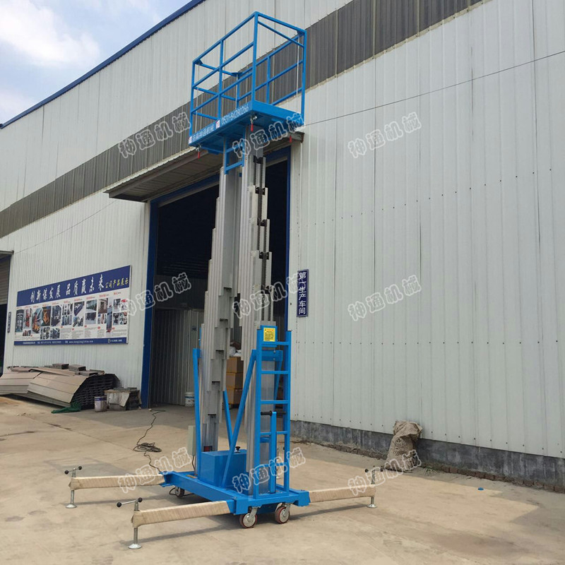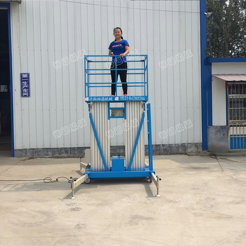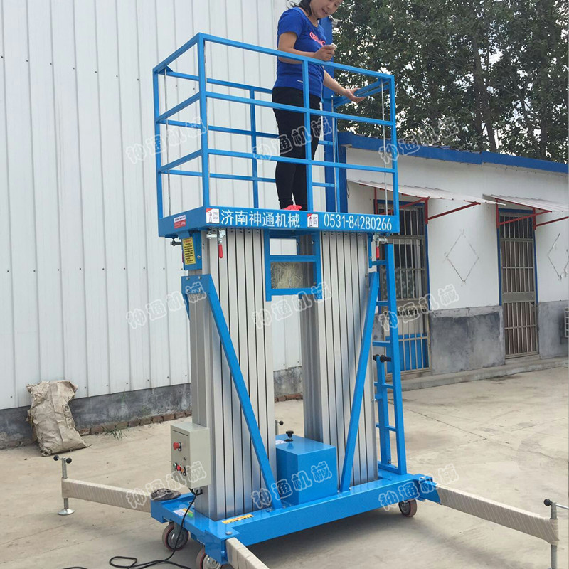 產(chǎn)品介紹:鋁合金電動升降機(jī),采用高強(qiáng)度優(yōu)質(zhì)鋁合金材料,具有造型美觀、體積小、重量輕、運(yùn)轉(zhuǎn)靈活,推行方便。升降平穩(wěn)、安全可靠等優(yōu)點。SJYL三柱鋁合金液壓升降平臺能穿越一般門廳,可隨意進(jìn)出電梯,能在極小的空間內(nèi)發(fā)揮最高的舉升能力。使單人高空作業(yè)變得輕而易舉。且耗電少、無污染、工作時不傷地面,可用于貼墻作業(yè)及探出作業(yè)。鋁合金液壓升降平臺分為:單柱、雙柱、三柱和四柱等。