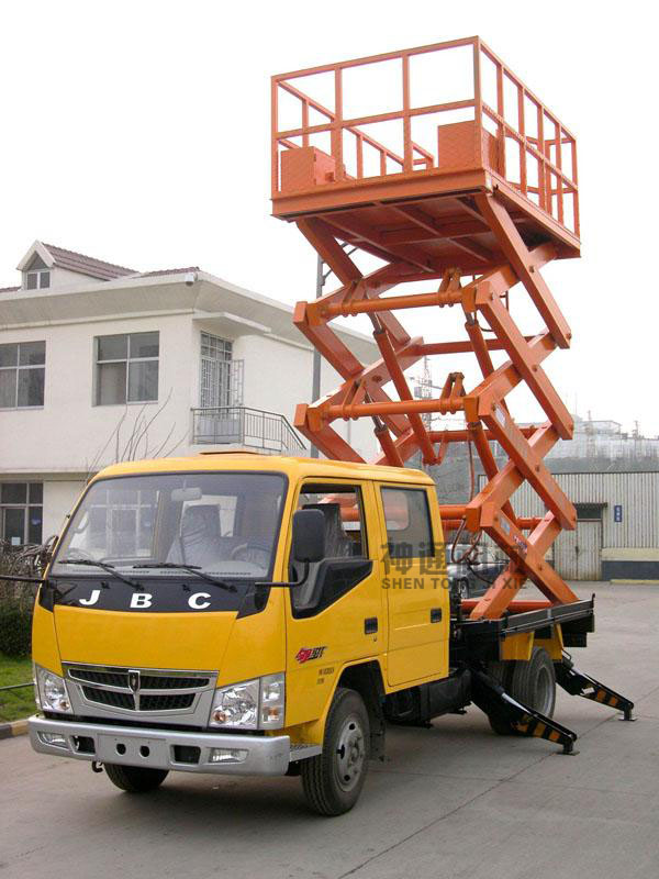 車載式升降平臺(tái)采用各種車底盤加固平臺(tái)底架,利用本車動(dòng)力在變速箱上輸出驅(qū)力油泵來(lái)操作的,無(wú)需外接電源,操作靈活簡(jiǎn)單、移動(dòng)方便、機(jī)動(dòng)性強(qiáng)、工作范圍大??蛙嚳筛鶕?jù)需求選用解放、東風(fēng)、江鈴、福田等車型;該車載式升降機(jī)廣泛應(yīng)用于市政建設(shè)維護(hù)、路燈維修、園林修剪、電路檢修、高速公路維護(hù)等場(chǎng)所的高空作業(yè);也可作為臨時(shí)性的高空照明、廣告宣傳等。
